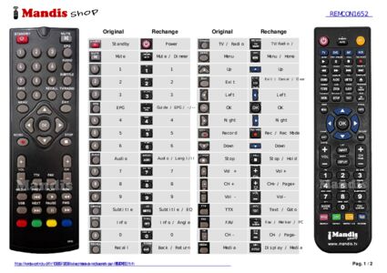 Un document est inclus pour vous aider à utiliser facilement la nouvelle télécommande, en indiquant la correspondance des boutons.