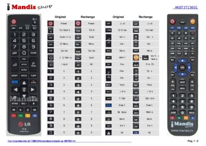 Un document est inclus pour vous aider à utiliser facilement la nouvelle télécommande, en indiquant la correspondance des boutons.