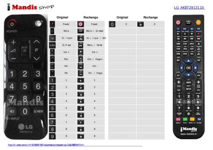 Cette télécommande remplace entièrement votre LG (AKB72913110) et offre toutes les fonctions de l'originale.