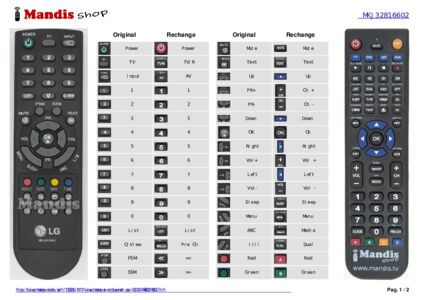 Un document est inclus pour vous aider à utiliser facilement la nouvelle télécommande, en indiquant la correspondance des boutons.