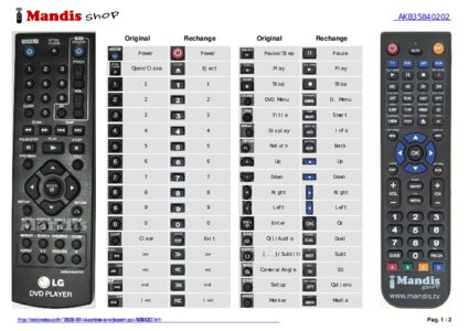 Un document est inclus pour vous aider à utiliser facilement la nouvelle télécommande, en indiquant la correspondance des boutons.