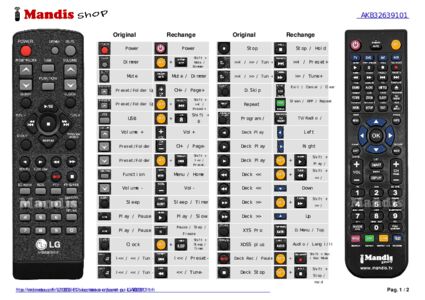 Un document est inclus pour vous aider à utiliser facilement la nouvelle télécommande, en indiquant la correspondance des boutons.