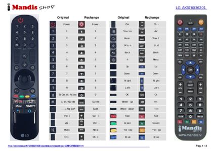 Un document est inclus pour vous aider à utiliser facilement la nouvelle télécommande, en indiquant la correspondance des boutons.
