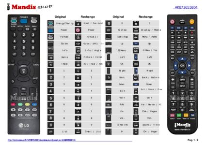 Un document est inclus pour vous aider à utiliser facilement la nouvelle télécommande, en indiquant la correspondance des boutons.