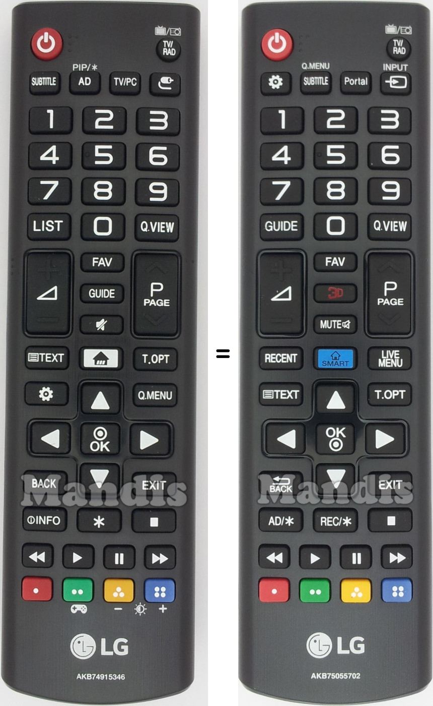 Télécommandes équivalentes qui remplacent la télécommande LG AKB75055702 et possèdent exactement les mêmes fonctions :