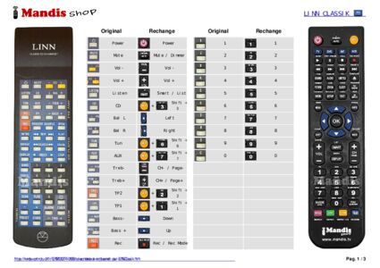 Un document est inclus pour vous aider à utiliser facilement la nouvelle télécommande, en indiquant la correspondance des boutons.