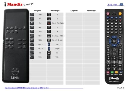 Cette télécommande remplace la plupart des fonctions de votre LK1 (ver. 2). Il ne s'agit pas d'une télécommande universelle, mais d'une copie avec la plupart des touches et des fonctions de votre télécommande d'origine.