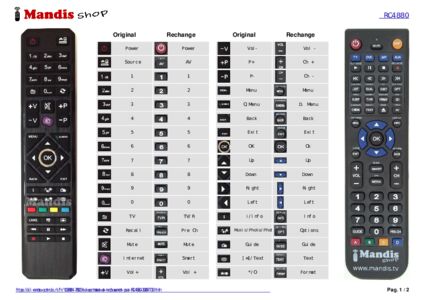 Un document est inclus pour vous aider à utiliser facilement la nouvelle télécommande, en indiquant la correspondance des boutons.