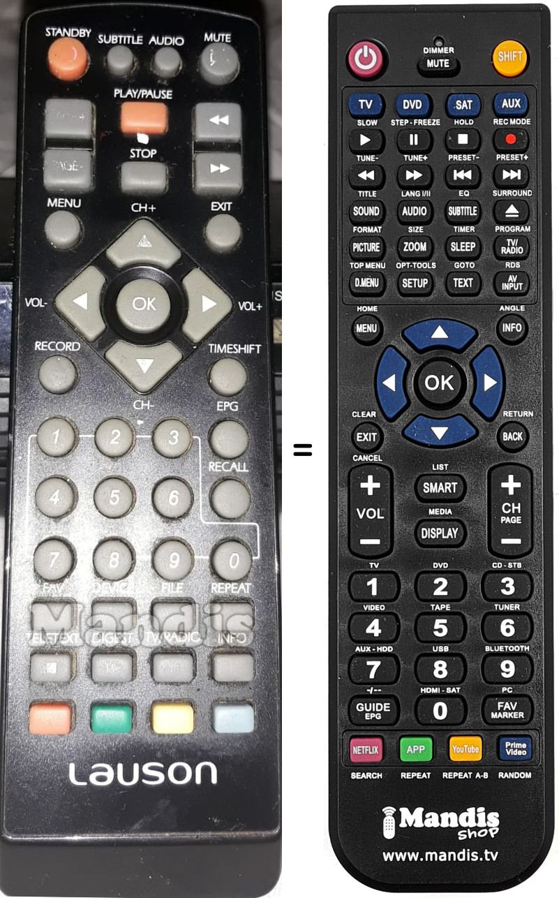 Télécommande qui remplace celle d'origine car elle possède les mêmes fonctions.