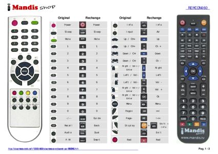 Un document est inclus pour vous aider à utiliser facilement la nouvelle télécommande, en indiquant la correspondance des boutons.