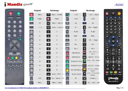 Un document est inclus pour vous aider à utiliser facilement la nouvelle télécommande, en indiquant la correspondance des boutons.
