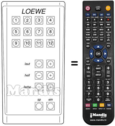 Télécommande qui remplace celle d'origine car elle possède les mêmes fonctions.