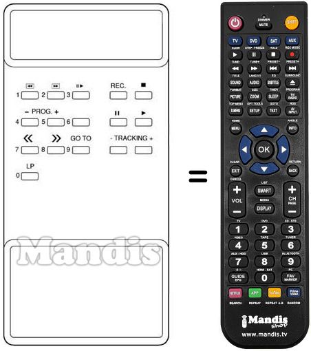Télécommande qui remplace celle d'origine car elle possède les mêmes fonctions.