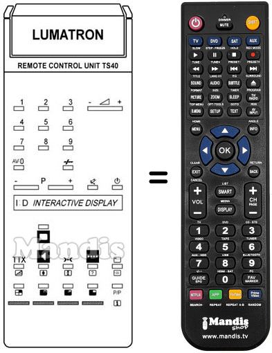Télécommande qui remplace celle d'origine car elle possède les mêmes fonctions.