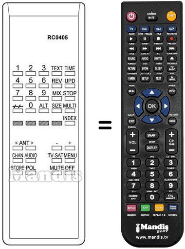 Télécommande qui remplace celle d'origine car elle possède les mêmes fonctions.