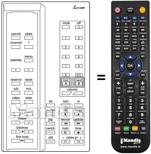 Télécommande qui remplace celle d'origine car elle possède les mêmes fonctions.