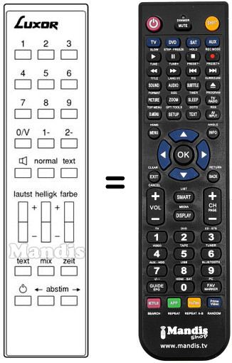 Télécommande qui remplace celle d'origine car elle possède les mêmes fonctions.