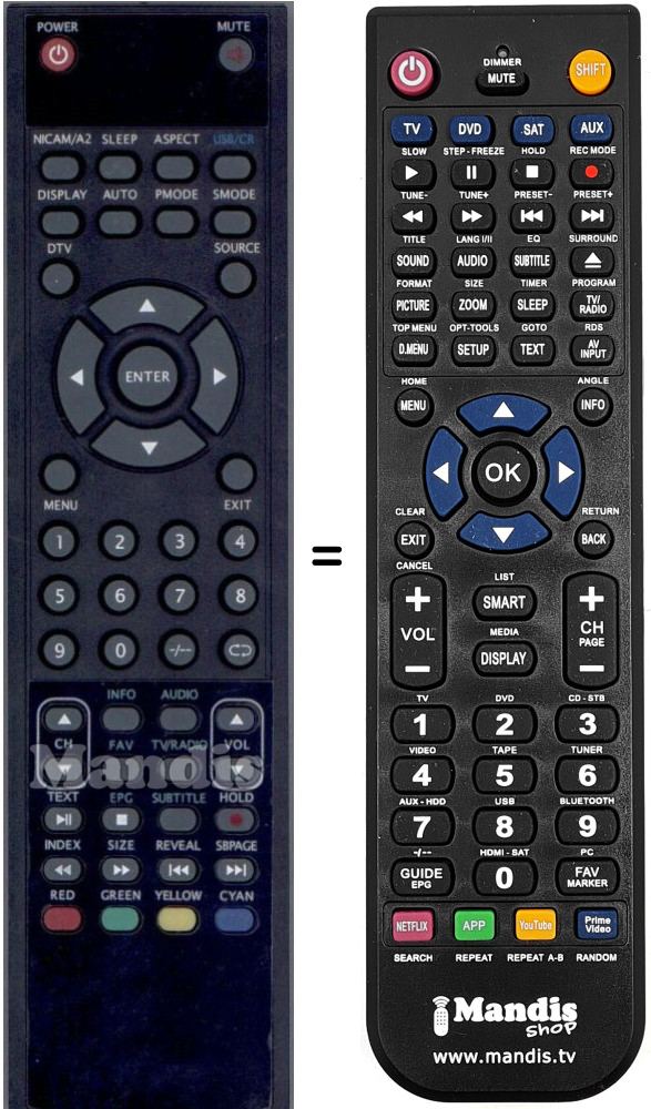Télécommande qui remplace la télécommande d'origine TVH-1950 car elle possède les mêmes fonctions.