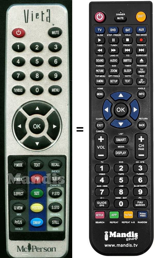 Télécommande qui remplace celle d'origine car elle possède les mêmes fonctions. Il ne s'agit pas d'une télécommande universelle mais d'une télécommande qui remplace celle d'origine. Vous recevrez la télécommande prête à fonctionner, vous n'aurez qu'à mettre les piles. Il n'est pas nécessaire de la programmer. Nous vous garantissons que la télécommande aura exactement les mêmes fonctions que celle d'origine.