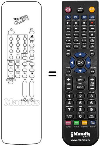 Télécommande qui remplace celle d'origine car elle possède les mêmes fonctions.