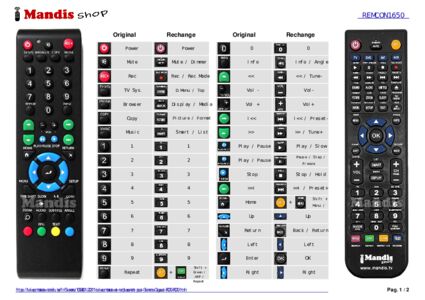 Un document est inclus pour vous aider à utiliser facilement la nouvelle télécommande, en indiquant la correspondance des boutons.
