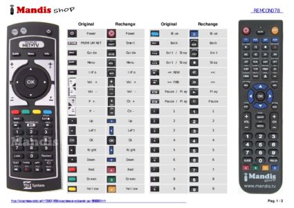 Un document est inclus pour vous aider à utiliser facilement la nouvelle télécommande, en indiquant la correspondance des boutons.