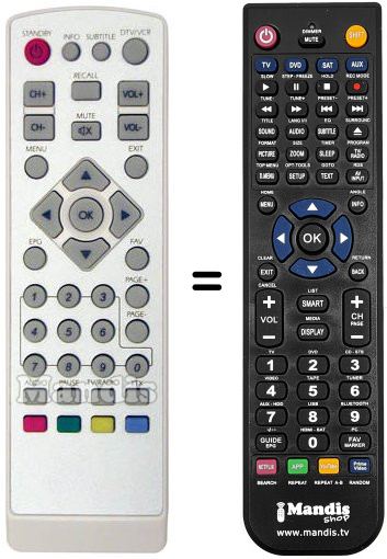 Télécommande qui remplace celle d'origine car elle possède les mêmes fonctions.