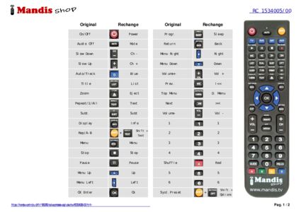 Un document est inclus pour vous aider à utiliser facilement la nouvelle télécommande, en indiquant la correspondance des boutons.
