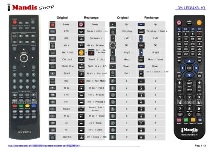 Un document est inclus pour vous aider à utiliser facilement la nouvelle télécommande, en indiquant la correspondance des boutons.