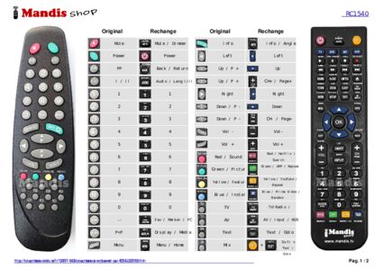 Un document est inclus pour vous aider à utiliser facilement la nouvelle télécommande, en indiquant la correspondance des boutons.