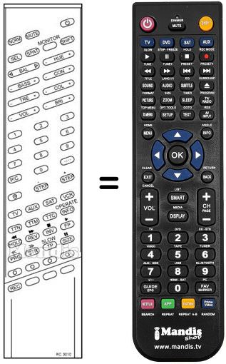 Télécommande qui remplace celle d'origine car elle possède les mêmes fonctions.