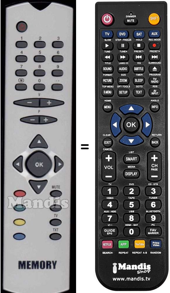 Télécommande qui remplace la télécommande d'origine ATV 6121 car elle possède les mêmes fonctions.