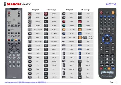 Un document est inclus pour vous aider à utiliser facilement la nouvelle télécommande, en indiquant la correspondance des boutons.