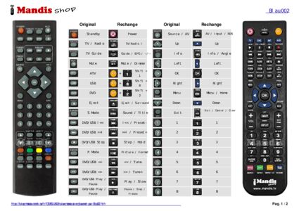 Un document est inclus pour vous aider à utiliser facilement la nouvelle télécommande, en indiquant la correspondance des boutons.