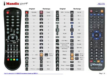 Un document est inclus pour vous aider à utiliser facilement la nouvelle télécommande, en indiquant la correspondance des boutons.