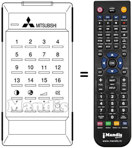 Télécommande qui remplace celle d'origine car elle possède les mêmes fonctions.