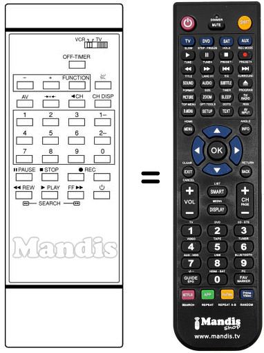 Télécommande qui remplace celle d'origine car elle possède les mêmes fonctions.