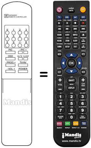 Télécommande qui remplace celle d'origine car elle possède les mêmes fonctions.