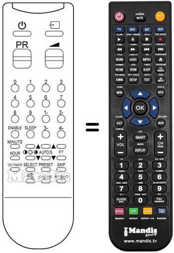 Télécommande qui remplace celle d'origine car elle possède les mêmes fonctions.