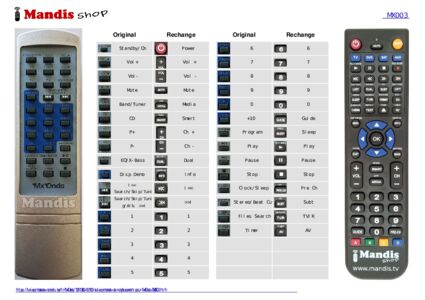 Cette télécommande remplace entièrement votre MX003 et offre toutes les fonctions de l'originale.