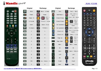 Un document est inclus pour vous aider à utiliser facilement la nouvelle télécommande, en indiquant la correspondance des boutons.