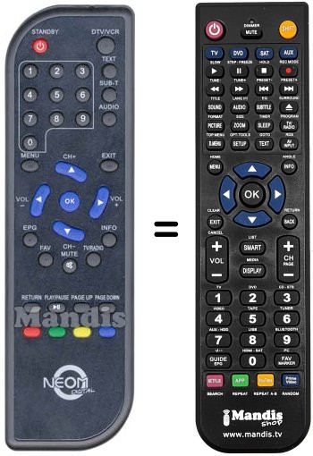 Télécommande qui remplace celle d'origine car elle possède les mêmes fonctions.