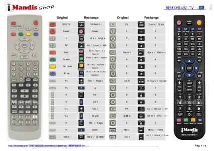 Un document est inclus pour vous aider à utiliser facilement la nouvelle télécommande, en indiquant la correspondance des boutons.