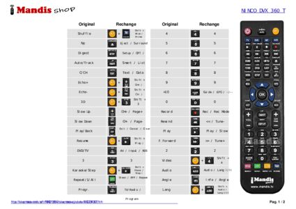 Un document est inclus pour vous aider à utiliser facilement la nouvelle télécommande, en indiquant la correspondance des boutons.