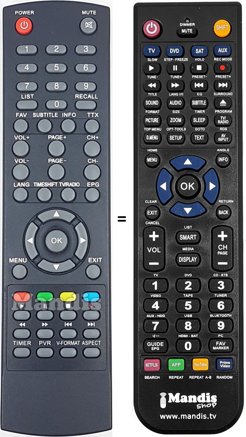 Télécommande qui remplace celle d'origine car elle possède les mêmes fonctions.