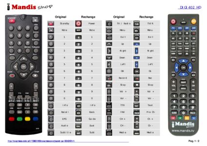Cette télécommande remplace entièrement votre DIGI402HD et offre toutes les fonctions de l'originale.