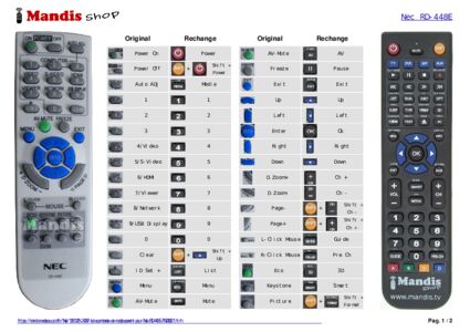 Un document est inclus pour vous aider à utiliser facilement la nouvelle télécommande, en indiquant la correspondance des boutons.