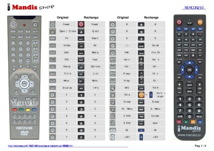 Un document est inclus pour vous aider à utiliser facilement la nouvelle télécommande, en indiquant la correspondance des boutons.