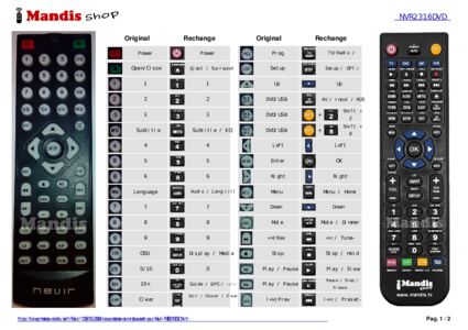Un document est inclus pour vous aider à utiliser facilement la nouvelle télécommande, en indiquant la correspondance des boutons.