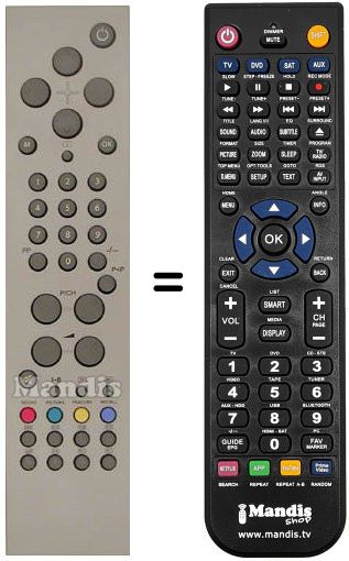 Télécommande qui remplace celle d'origine car elle possède les mêmes fonctions. Il ne s'agit pas d'une télécommande universelle mais d'une télécommande qui remplace celle d'origine. Vous recevrez la télécommande prête à fonctionner, vous n'aurez qu'à mettre les piles. Il n'est pas nécessaire de la programmer. Nous vous garantissons que la télécommande aura exactement les mêmes fonctions que celle d'origine.